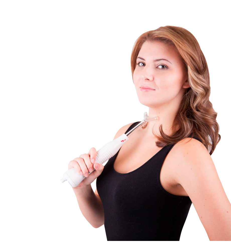 Аппарат для дарсонвализации с 4 видами насадок. За счет воздействия импульсным током на ткани тела предотвращает и борется с целым рядом проблем: угревая сыпь и высыпания, перхоть, варикозное расширение вен, мигрень, невралгия, артрит.