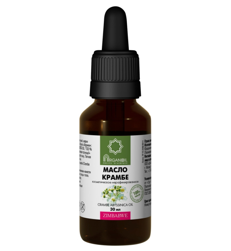 Масло Крамбе увлажняет и разглаживает кожу, восстанавливает защитный липидный слой, а также способствует регенерации и защите кожи от негативных факторов внешней среды, снижению воспалительных реакций жирной и проблемной кожи.