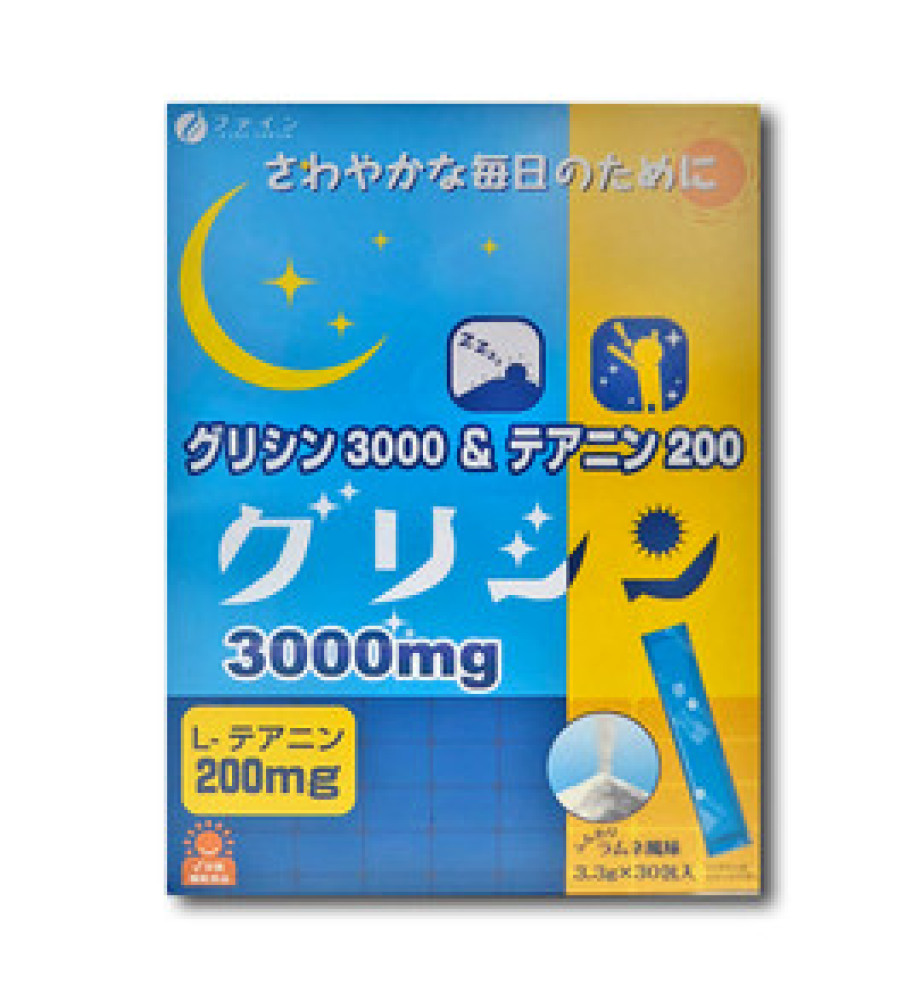 БАД «Глицин и Теанин» от японской компании Fine Japan содержит в каждом своем саше 3000 мг глицина и 200 мг L-теанина, которые помогают быстро и глубоко засыпать, хорошо высыпаться, а утром чувствовать себя бодрым и в приподнятом настроении.