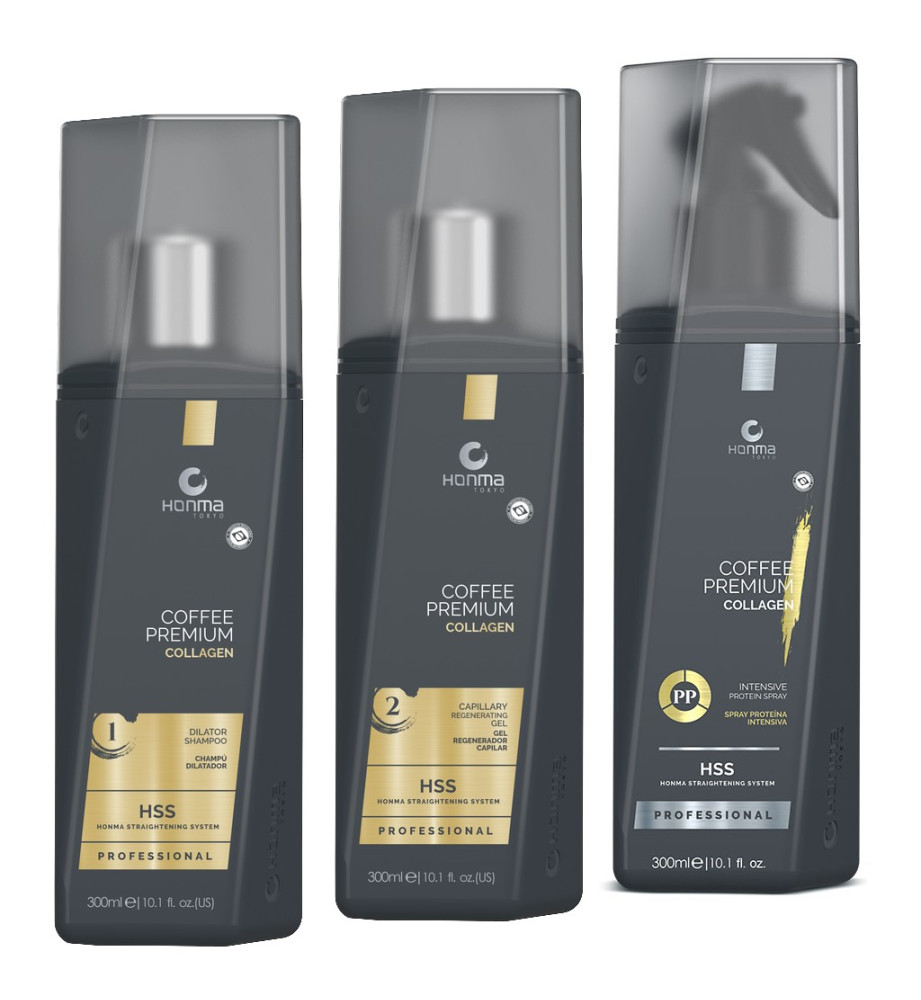 Honma Tokyo Набор для выпрямления волос Coffee Premium Сollagen, 3*300 мл