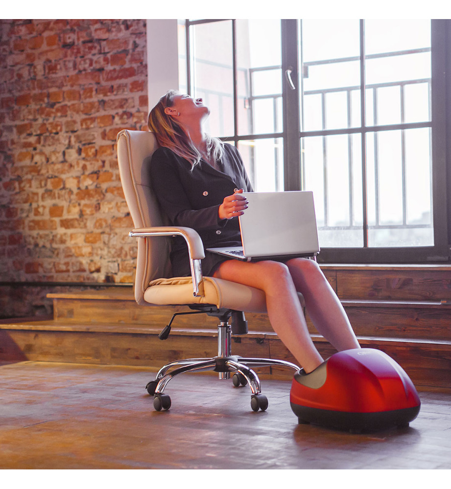 Роликовый массажер для ног с 5 программами массажа и 3 режимами интенсивности. Массажные ролики плотно прилегают к стопе, обеспечивая качественный массаж.