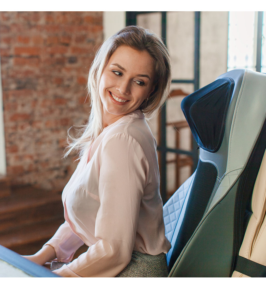 Можно настроить работу массажного сидения по своему усмотрению. Высоту роликов для шейно-плечевой зоны можно регулировать, тем самым накидка будет подстраиваться под рост. Накидка сконструирована таким образом, что при использовании все массажные ролики будут максимально плотно прилегать к телу, обеспечивая качественный массаж.