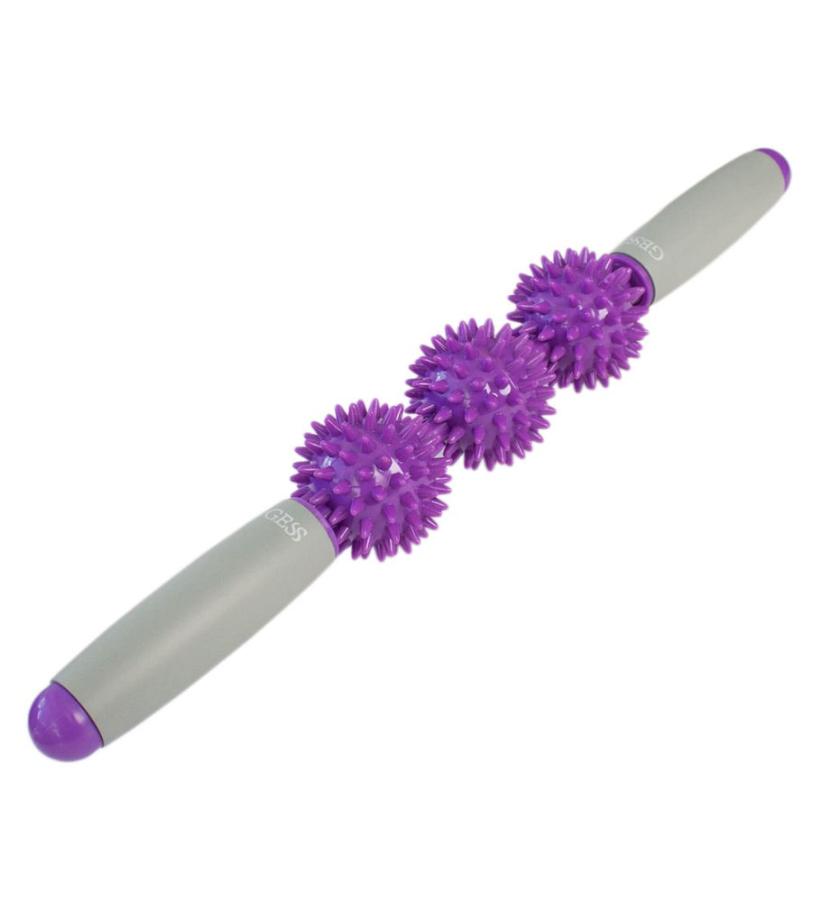 Массажная палка для фитнеса и йоги представляет собой ролик с массажными крутящимися секциями и двумя удобными прорезиненными ручками.