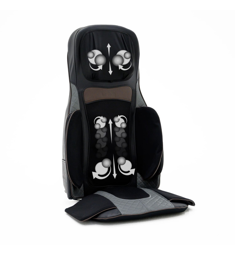 Массажная накидка с дополнительными воздушными подушками (9) и увеличенным количеством массажных роликов (10) для массажа всего тела: шеи, плеч, спины, поясницы и бедер. В массажере для тела используется современная технология роликового, воздушно-компрессионного, вибрационного, шиацу и 3D массажа, которая эффективно расслабляет и разминает мышцы от шеи до бёдер. В области сидения включена дополнительная функция вибромассажа с 3 уровнями интенсивности. Есть возможность выбора зоны массажа спины, массаж фиксированной точки, инфракрасный прогрев. Высоту массажных роликов для шейно-плечевой зоны можно регулировать и настраивать массажную накидку под свой рост. Благодаря этому электрический массажер может использоваться всей семьей. Удобный пульт управления. Таймер 5-10-20 минут. Гарантия 12 месяцев.