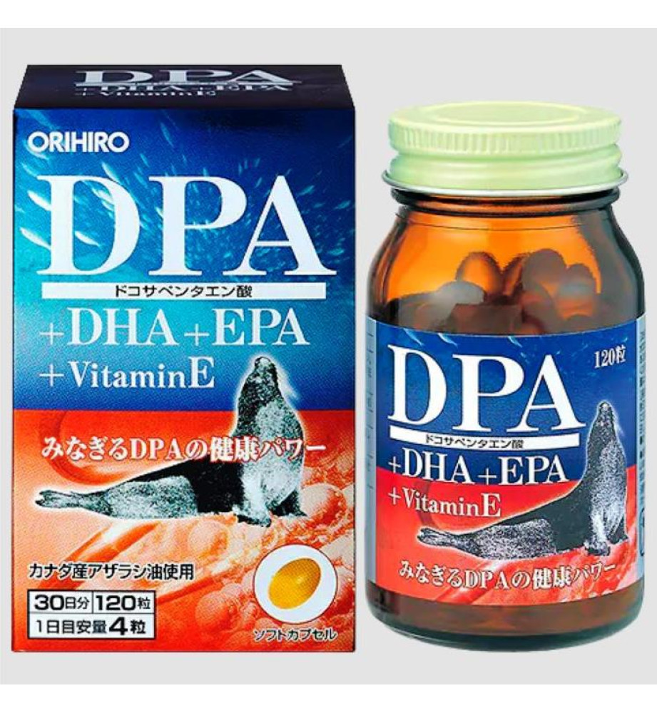 Orihiro (Орихиро) БАД "ДПА+ДГК+ЭПК Омега-3 жирные кислоты (DPA, DHA, EPA, Omega-3)", 120 капсул