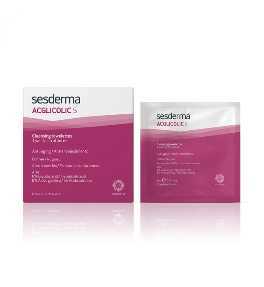 Sesderma Acglicolic S Cleansing Towelettes / Салфетки очищающие для лица с гликолевой и салициловой кислотой, 14 шт