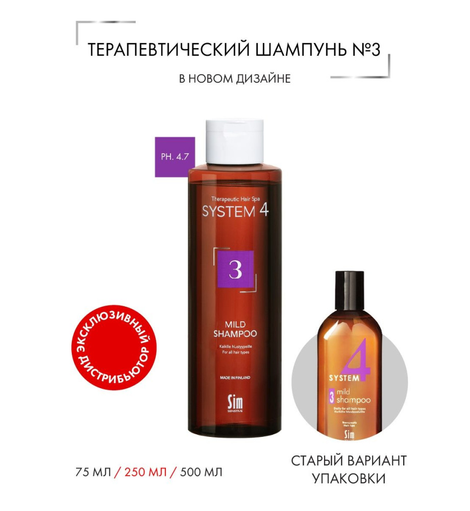 Sim Sensitive (Сим Сенситив) System 4 Mild Climbazole Shampoo 3 / Терапевтический шампунь №3 для профилактического применения, 250 мл