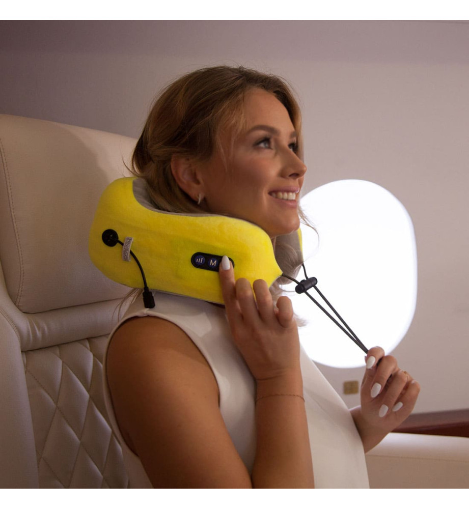 uTravel - беспроводная подушка для путешествий и массажер для шеи. 2 массажных ролика и функция прогрева прорабатывают ваши мышцы в дороге.Такая подушка снимает боль и помогает чувствовать себя комфортно в любом месте, даже в долгой поездке.